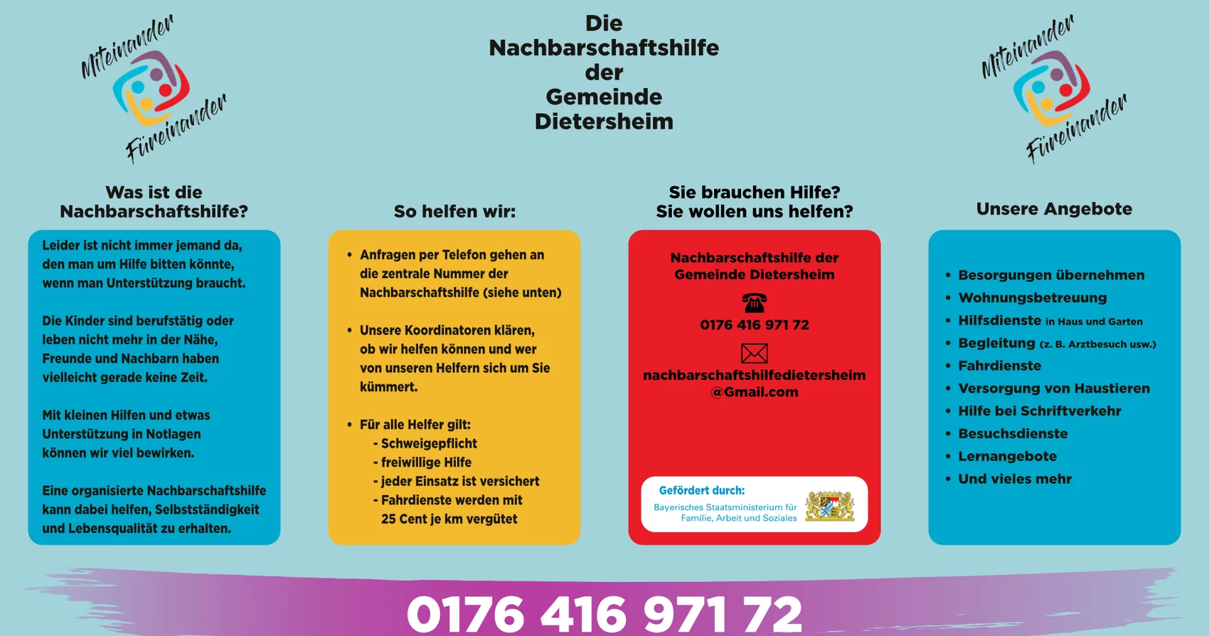 Die Mailadresse lautet: nachbarschaftshilfedietersheim@Gmail.com