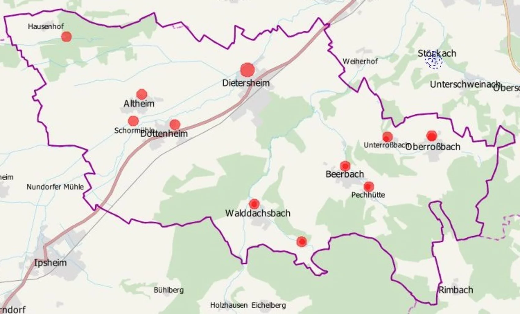 Die Gemeinde Dietersheim besteht aus insgesamt 11 Ortsteilen. Nachfolgend finden Sie eine Übersicht.