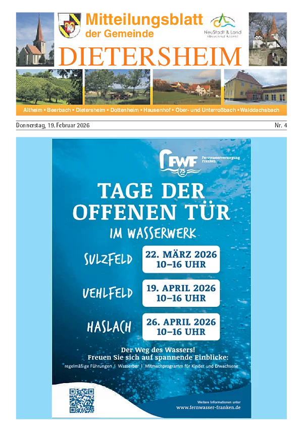 Sollten Sie für eine Veranstaltung Ihres Vereins oder Ihrer Institution einladen wollen, oder einen Bericht hierzu veröffentlichen wollen, können Sie die Beiträge gerne per email senden an: mitteilungsblatt[at]dietersheim.de